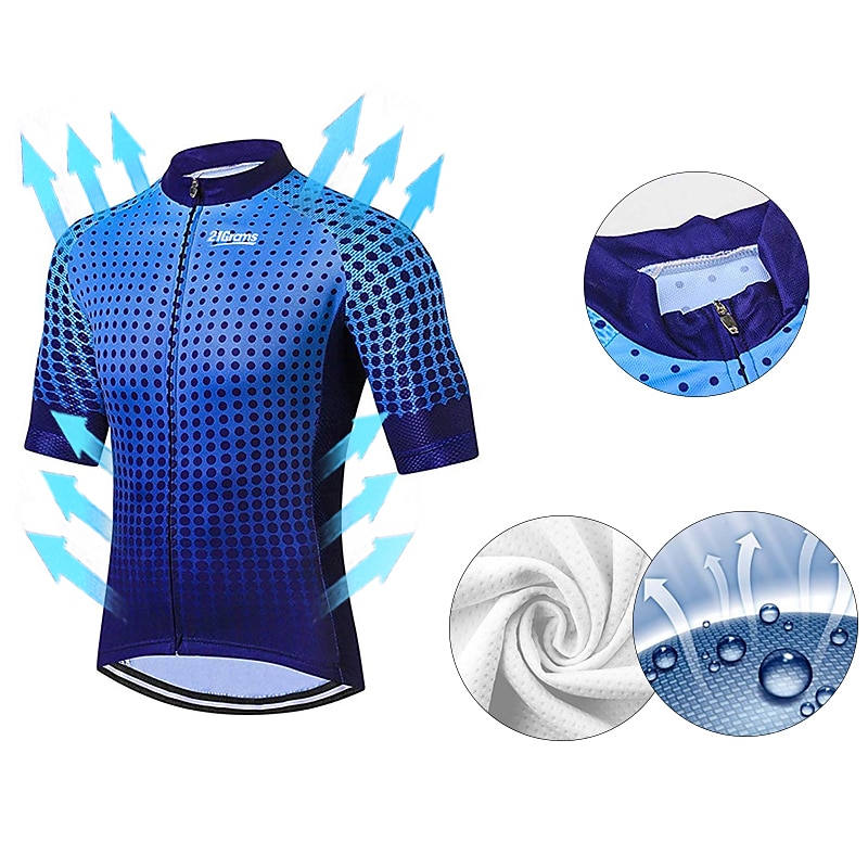 Why Choose Men's Cycling Jersey Solid Color Patterned Dot Short Sleeve Bike Jersey Top with 3 Rear Pockets Mountain Bike MTB Road Bike Cycling UV Resistant rapid Dry Back Pocket Sweat-Wicking Sports Yellow Blue?