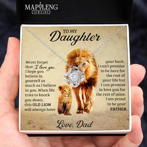 Material: Cubic ZirconiaMetal type: Sterling SilverClasp type: LobsterChain type: C-LinkGem type: Cubic Zirconia[MESSAGE TO TOUCH THE HEART] This necklace will make your daughter feel boundless respect and love. She will be very motivated to overcome any problems that come her way in the future. Your daughter will always know she has a powerful support system, a home where she is a cherished.[MADE IN US] Finished in 14k white gold, this meaningful gift for Daughter will be a timeless symbol of a father's love for his beloved daughter; first-class Cubic Zirconia. The gift is presented in a luxurious golden box.[MEANING] Show your daughter that no matter where life takes you, you are still family and always together. Your gift is a symbol of togetherness. A perfect gift for any occasion or any time. Perfect for everyday use. High quality materials and excellent craftsmanship ensure long-lasting durability.