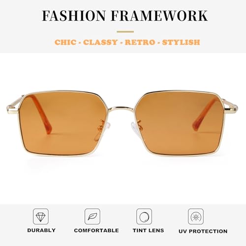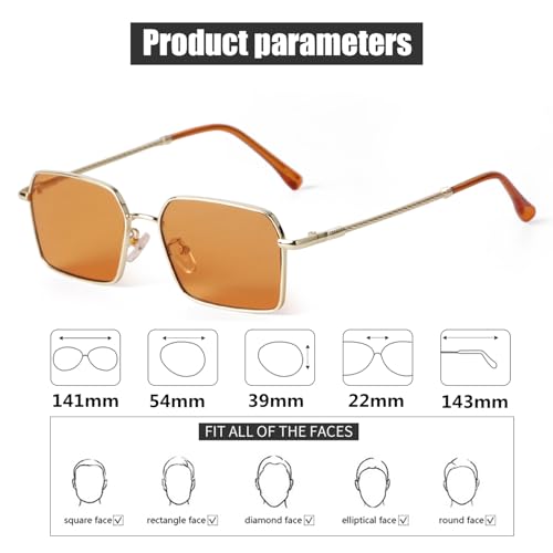 Care instructions: Clean lenses with a soft cloth. Store in the provided pouch when not in use. Avoid exposure to high heat or humidity.Origin: ImportedUnique Sunglasses for Women : Modern Hexagonal Rectangle Shaped Frame with Golden Rope Details on the Temples,This Chic Design are Totally a sense of Classic But More 2025 Fashion chic TrendsTinted Lense Sunglasses : Colored Lens Glasses is so popular for Times, Orange Lense can be used indoor or night driving,Light Blue Lense, Grey and Brown, Green lens are are the perfect choice for outdoor activities such as city walk,shopping,driving, traveling, taking photos and are suitable as a high fashion accessory and daily wear all year roundHigh Quality Metalllic Material: Sleek and Lightweight(24g),Nose Pads can be Adjustable to Suits Different Face Shape,UV400 rated Lens is essential to protecting your eyes against UV damage,All Detail Balence Fashion and Comfortable Long Time UseProduct Dimension : Lens Width: 54mm(2.13 inches) | Lens Height: 39mm (1.54 inches) | Temple Length: 140mm(5.51 inches) | Nose Bridge: 22mm(0.87 inches).Weight: 24g (0.053 lb),Medium Size Suits Most PeopleYou will receive Sunglasses*1,Soft Drawstring pouch*1 (Can be used for Cleaning Cloth also) ,Making it a wonderful yet practical gift idea for friends and family! Perfect for everyday use. first-class materials and excellent craftsmanship ensure long-lasting durability.