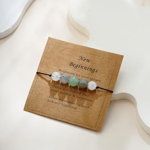 Material: BrassMetal type: BrassGem type: No gemstoneItem type name: Strand BraceletsNEW BEGINNINGS BRACELET: This new beginnings bracelet contains 4 natural healing stones: Moonstone for inner growth and strength through change. Labradorite for mental clarity and trusting your inner wisdom & judgement. Green Aventurine for the courage to make the most of every opportunity. Amethyst for remaining calm and in controlINSPIRATIONAL GIFTS: This bracelet is the best encouragement gifts for your friends, family or your love. If you want someone you care about to have a new beginnings after a divorce, breakup, or otherwise, this new beginnings bracelet is a great gift choice! Comes in a elegant gift bag, ready for givingSIZE: The new beginnings bracelet come with sliding knot closure with adjusting from 4-11. Four natural healing stones are 6mm, 0.8mm nylon cord for a light pleasant wear. Expandable string bracelet is easy to open and close, suitable for most womenMATERIAL: Made of first-class natural healing crystal bead, moonstone, labradorite, green aventurine, amethyst. Hypoallergenic, Nickel-free and Lead-free, will not irritate your skin. Comfortable and affordable to wearAfter Service: If you have any question with the empath anxiety calming protection bracelets, please contact with us, we will reply to you within 24 hours Perfect for everyday use. High quality materials and excellent craftsmanship ensure long-lasting durability.