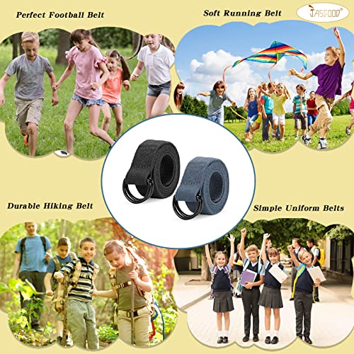 JASGOOD Kids Canvas Belts for Boys Girls Double D-ring Buckle Web Strap Belt Uniform Baseball Unisex Waist Belt for Youth