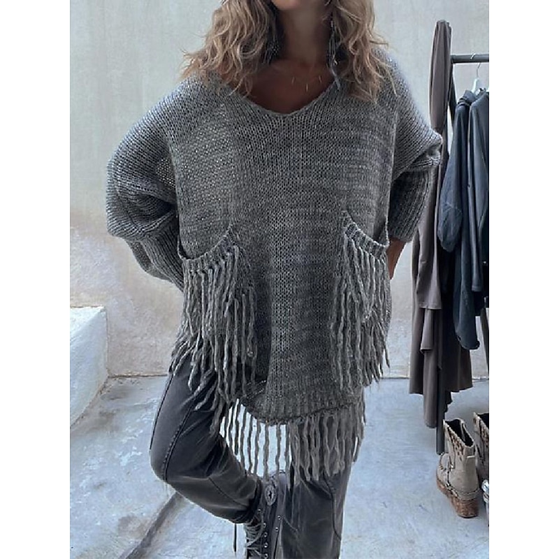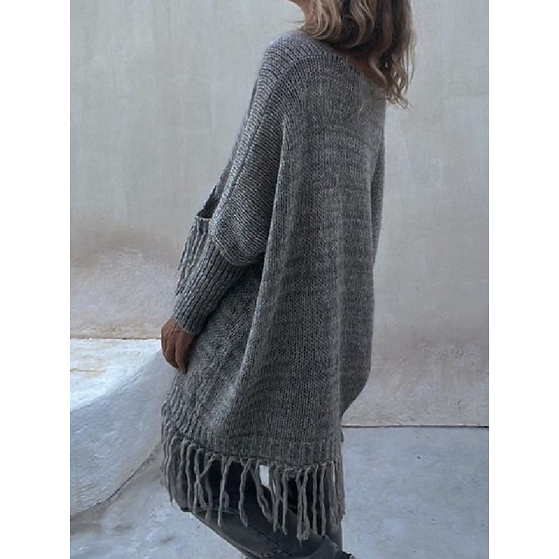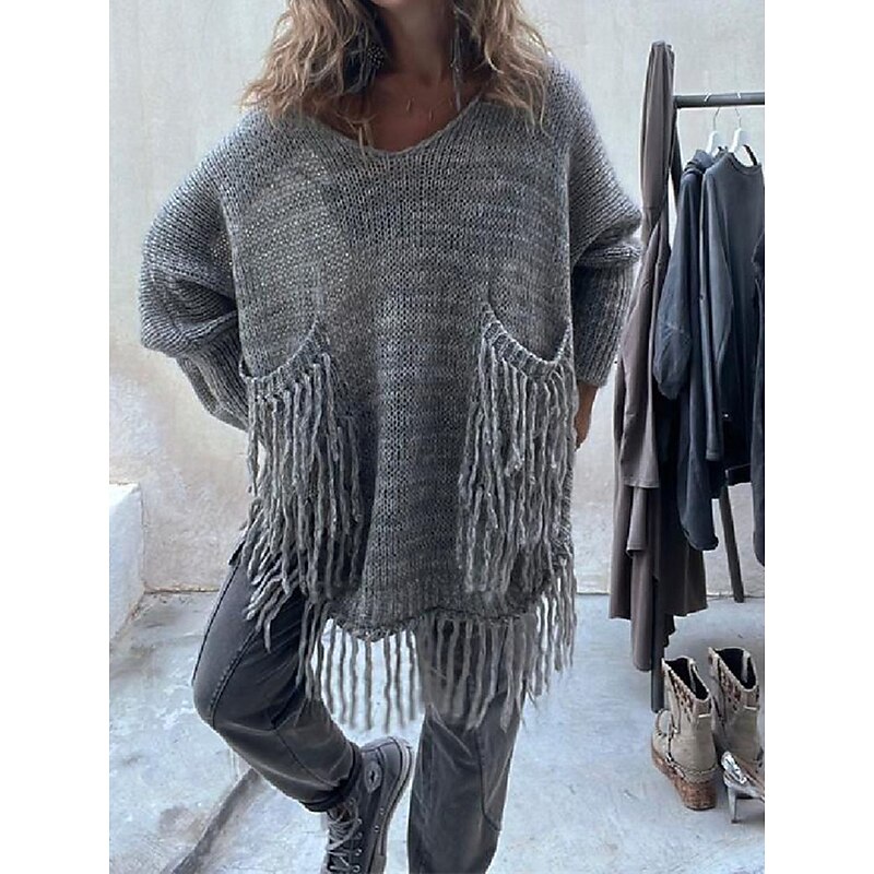 More information about Women's Pullover Sweater Jumper Fashion Streetwear Casual Solid Color Ribbed Crew Neck Pocket Tassel Knitted Long Sleeve Long Tops Knit Outdoor Daily Going out Camel Green Fall Winter
