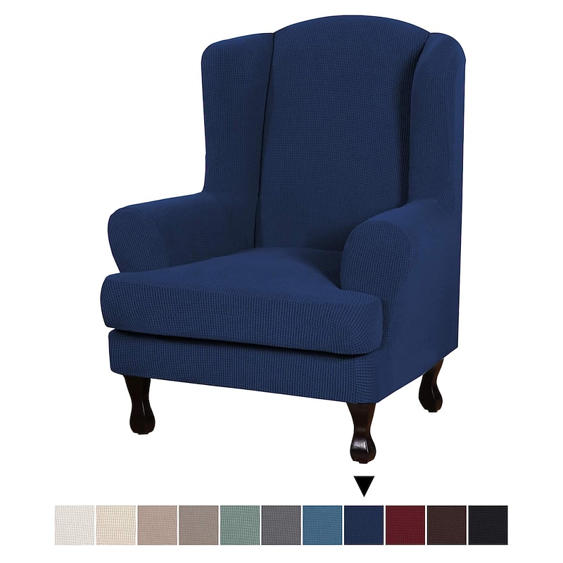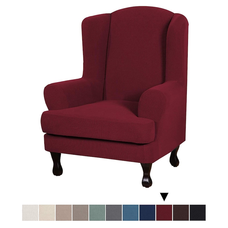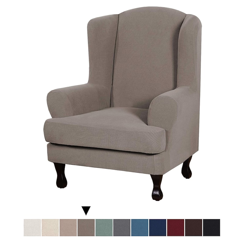 2 Piece Sofa Cover High Stretch Jacquard Fabric Furniture Slipcover Stay in Place velvety Spandex Form Fit Wing Back Armchair Slipcovers Skid Resistance Machine Washable
