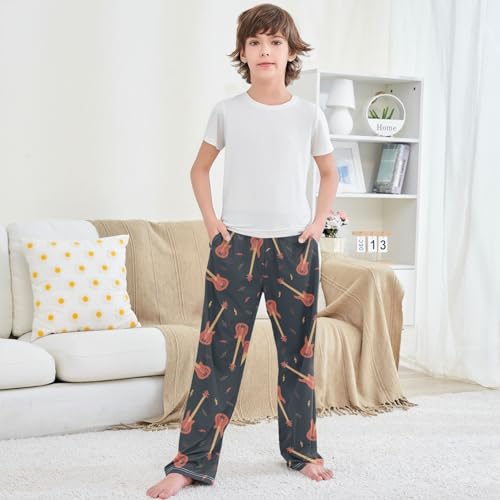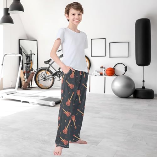 Boy's Pants Bass Guitar Jogger Pants Elastic Waist Long Bottoms Trousers with Pockets 6-14 Years