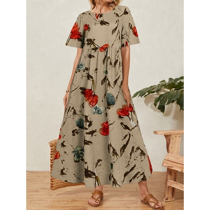 This Women's Maxi Dress Cotton Linen Dresses Casual Dress Swing Dress Cotton Maxi Dress contemporary Casual Vacation Daily Regular Fit Floral Short Sleeve Crew Neck Light Yellow Green Summer combines elegant design with practical functionality. Every detail has been carefully considered to ensure you get the best possible experience. The finest construction means this product will serve you well for years to come.