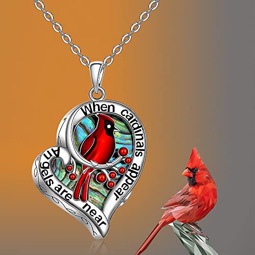 Cardinal Urn Necklace for Ashes - When Cardinals Appear Angels Are Near - Sterling Silver Red Memorial Cremation Keepsake Jewelry for Women