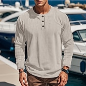 More information about Men's Button T Shirt T Shirt Henley Shirt Tee Long Sleeve Henley Spring & Fall Plain Pit Strip Fashion Designer Basic Buttons Vacation Street Going out Wine Black Khaki Top Tee for Men