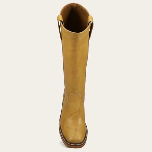 - Design: These riding boots are designed with pull on , wide calf, leather, square toe, chunky heels.