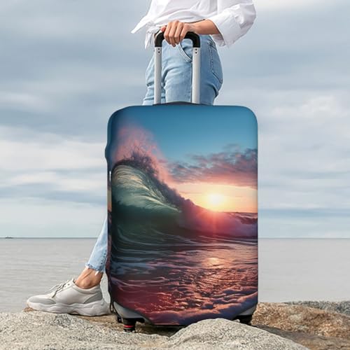 Ocean Tide Waves Travel Luggage Cover Elastic Washable Suitcase Cover Protector Fashion Stretch Baggage Covers Dustproof Suitcase Sleeve Fits 18-32 inch luggage Large