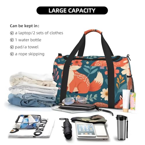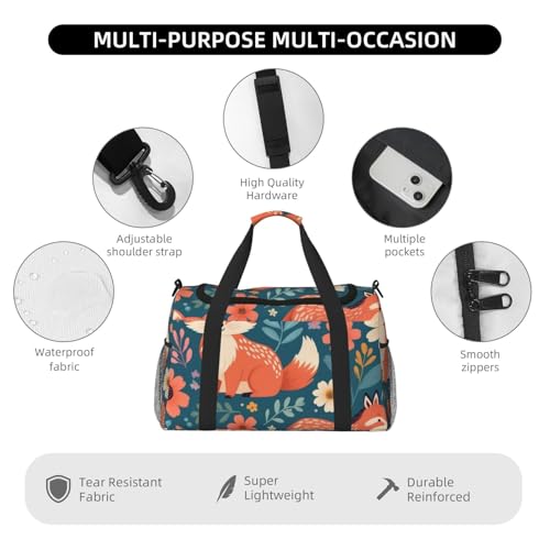 Cute Floral Animal Pattern Print Travel Duffle Bag - Foldable Personal Item Travel Bag for Women & Men,Carry-On Convertible Crossbody Tote Bags with Adjustable Shoulder Strap & Pockets 13x10.2x19.7 in