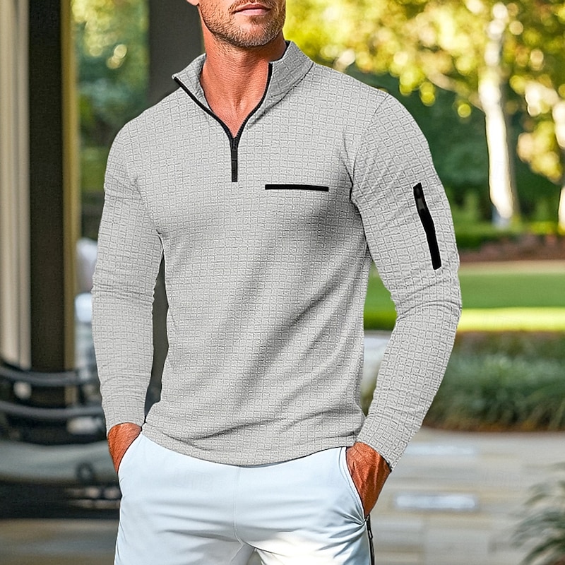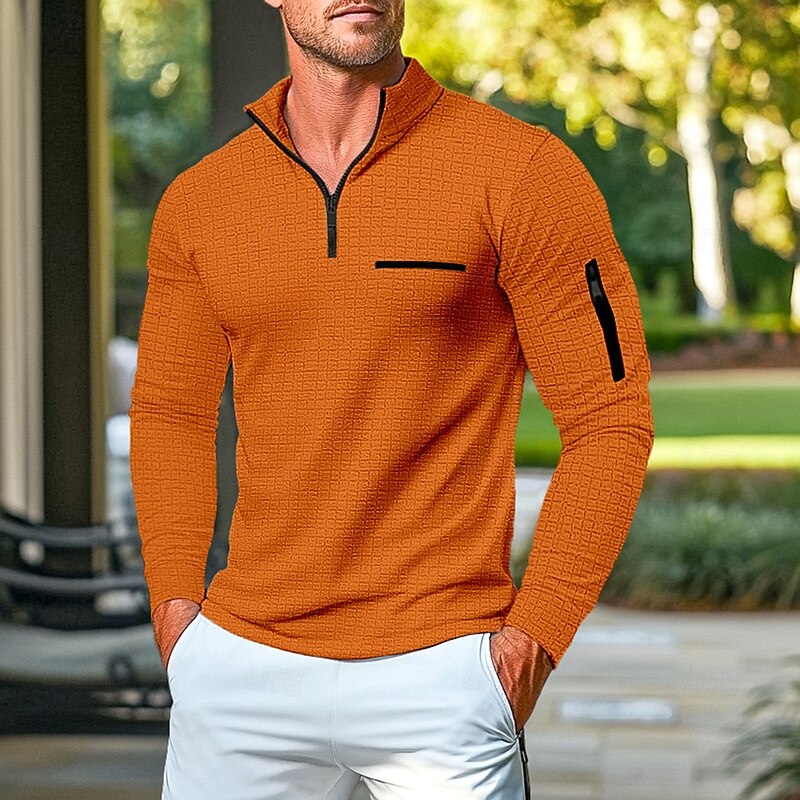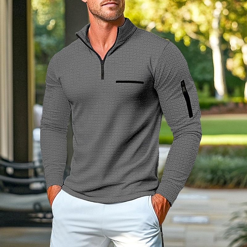 This Men's Waffle Polo Shirt Pullover Home Sports Outdoor Daily Wear Quarter Zip Long Sleeve Fashionable and Comfortable Color Block Zipper Pocket Spring and Autumn Cross-season vintage Style combines elegant design with practical functionality. Every detail has been carefully considered to ensure you get the best possible experience. The excellent construction means this product will serve you well for years to come.