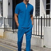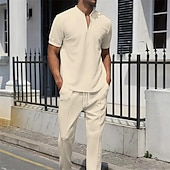 Men's Waffle Polo Shirt Quarter Zip Polo Daily Holiday Quarter Zip Short Sleeve Fashion Basic Plain Spring & Summer Regular Fit Black White Blue Khaki Gray Waffle Polo Shirt