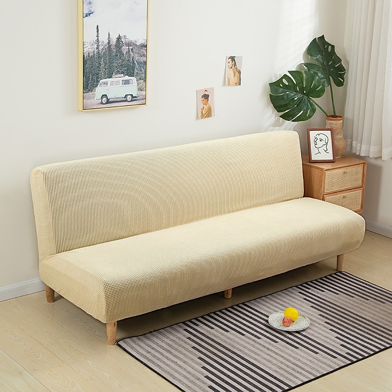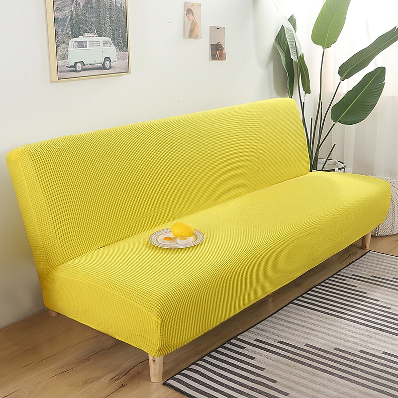 Stretch Futon Sofa Cover Burgundy Slipcover Elastic Couch White Grey Plain Armless Sofa Furniture Protector Solid gentle sturdy Washable