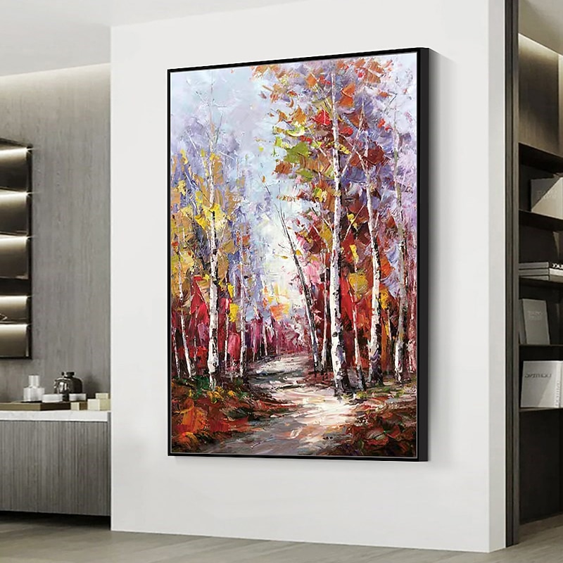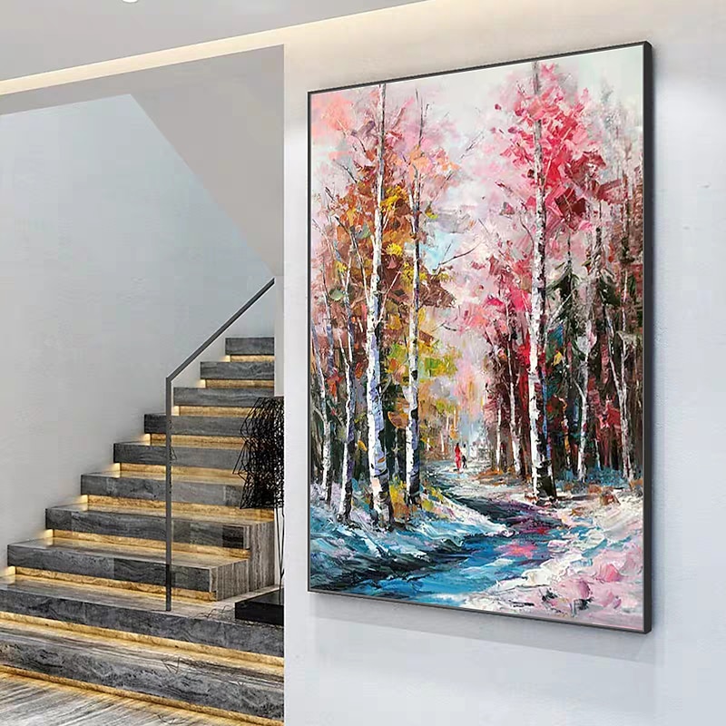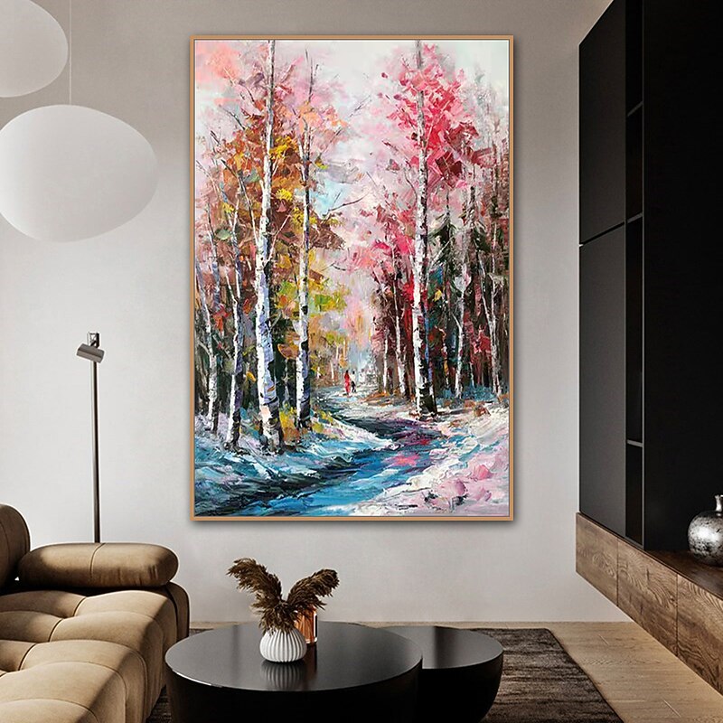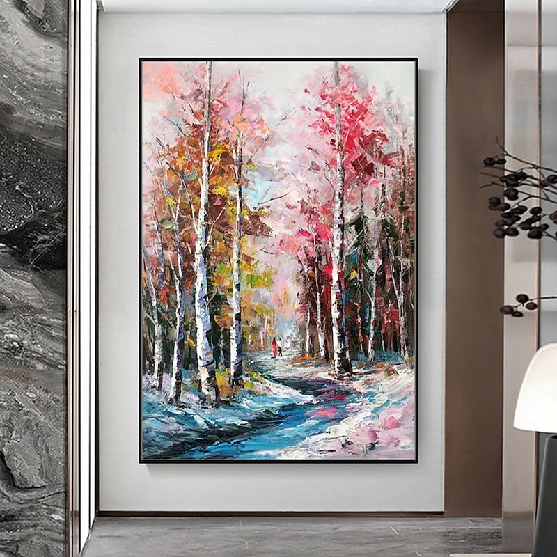 Mintura Handmade Trees Landscape Oil Paintings On Canvas Wall Art Decoration latest Abstract Picture For Home Decor Rolled Frameless Unstretched Painting