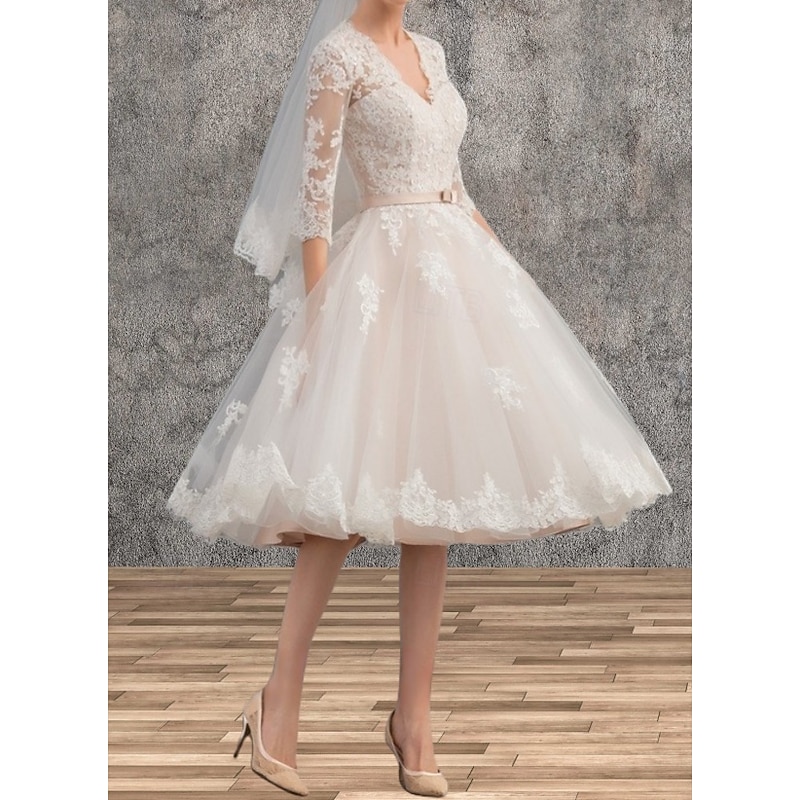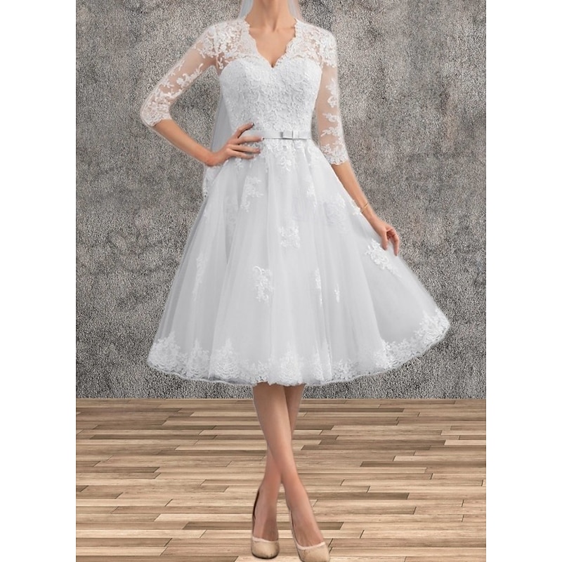 This Engagement Little White Dresses Wedding Dresses A-Line V Neck 3/4 Length Sleeve Tea Length Satin Bridal Gowns With Sash / Ribbon Appliques combines elegant design with practical functionality. Every detail has been carefully considered to ensure you get the top possible experience. The supreme construction means this product will serve you well for years to come.