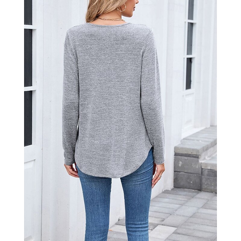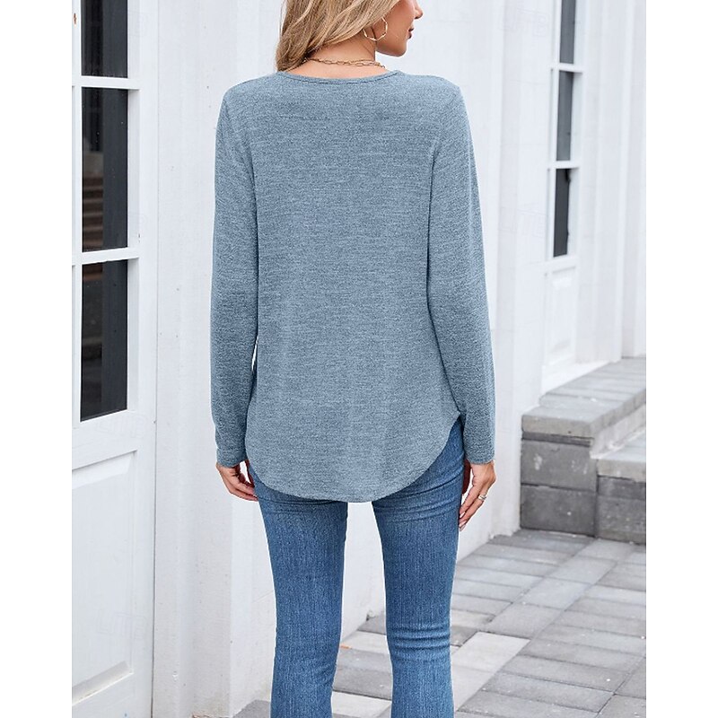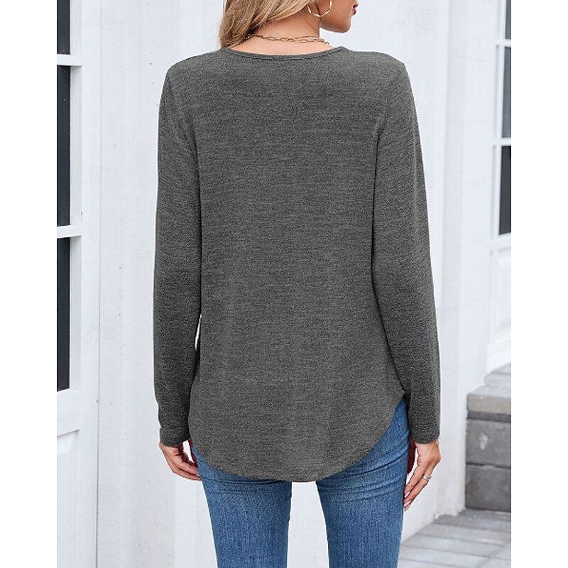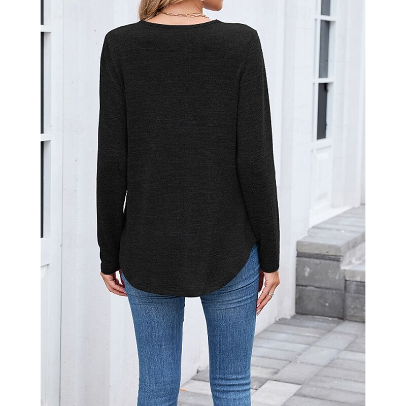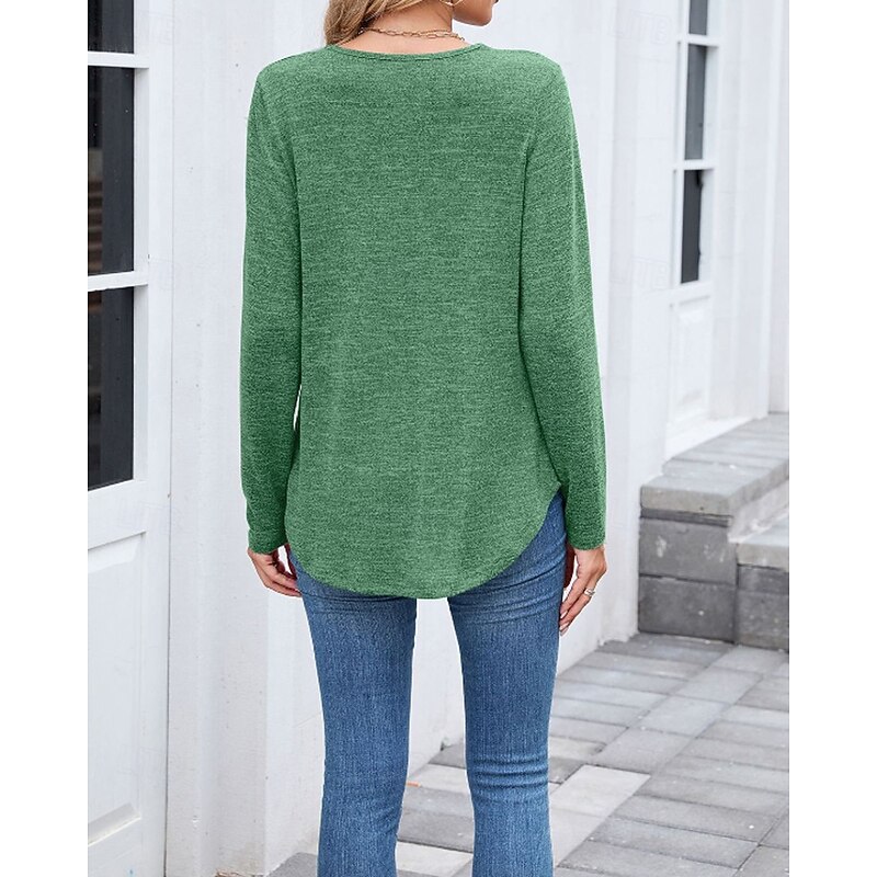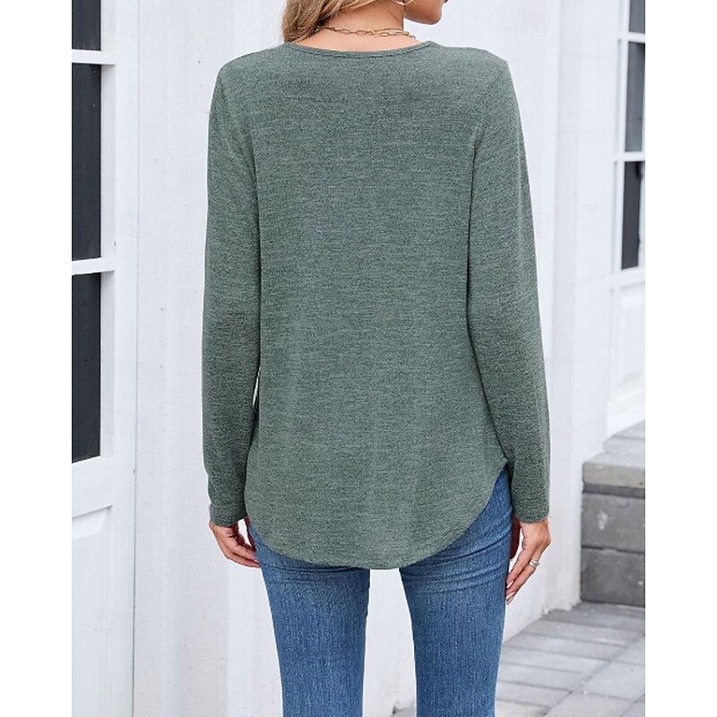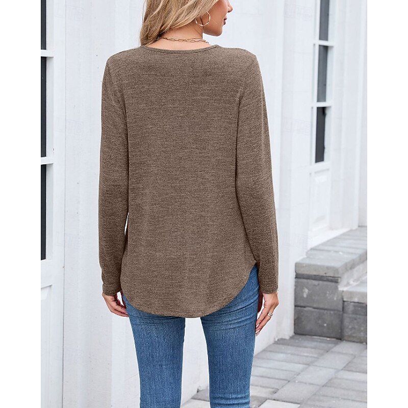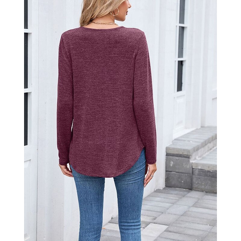 Why Choose Women's Texture Blouse T Shirt Plain Casual Long Sleeve V Neck Regular Tops Daily Weekend Black Wine Army Green Blue Brown Fall?