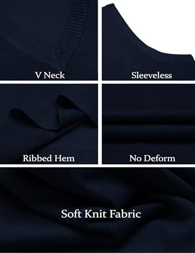 COOFANDY Men's Sleeveless Sweater Vest Lightweight V-Neck Solid Cotton Vest Pullover Navy Blue