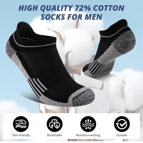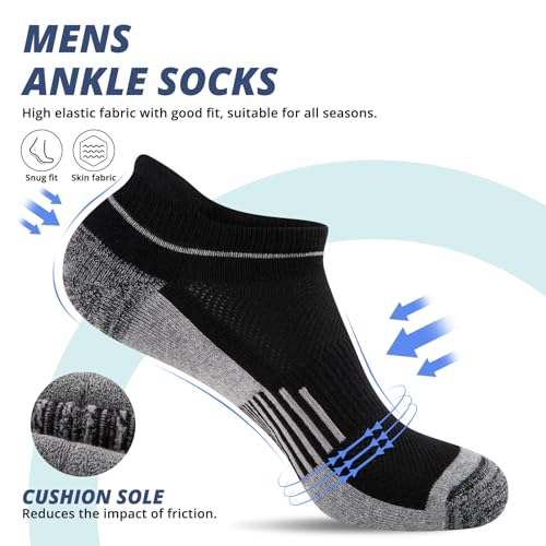 COOVAN Mens Cotton Ankle Athletic Socks 8 Pack Cushiond Breathable Low Cut Anti-Blister Tab Sport Sock 8 Pairs